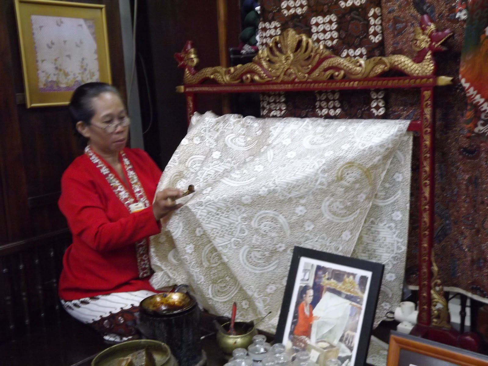I usually have a lot of free time on weekends I spent at stores that sell goods and traditional tools. This store has a collection of old stuff decades ago. Sale of goods and equipment, among others, is a traditional cloth , a traditional beverage, body scrubs, perfumes, bags, lights, cameras all have a traditional touch. And no less unique is the ancient calculating machine. In one corner of the store there is a special stand that show a person makes a pattern on fabric with traditional tools.